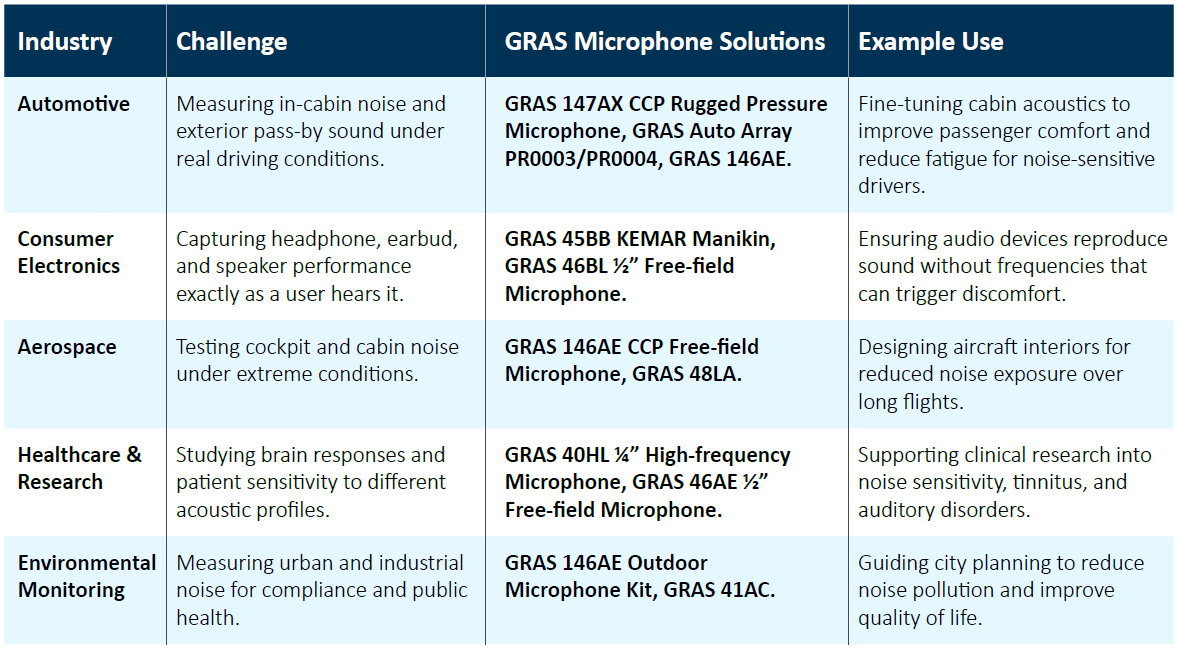 The BBC’s recent exploration into the “brains of noise-sensitive people” underscores a shift: sound is no longer just an engineering challenge—it’s a human one. GRAS helps bridge that gap between science and real-world impact. Our microphones and fixtures are engineered to precisely replicate human auditory exposure, ensuring accurate and repeatable measurements that faithfully represent real-world acoustic conditions. In industries from automotive to healthcare, we help innovators build environments and technologies that protect mental well-being.