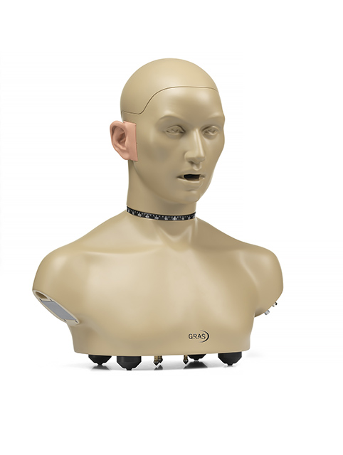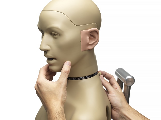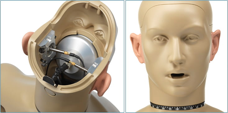 GRAS 45BD AutoKEMAR 可选配仿真嘴,从而能在车厢内进行逼真的语音和发声测试。该仿真嘴作为位于头部内部的声学声源,通过 AutoKEMAR 的开口发出音频信号。