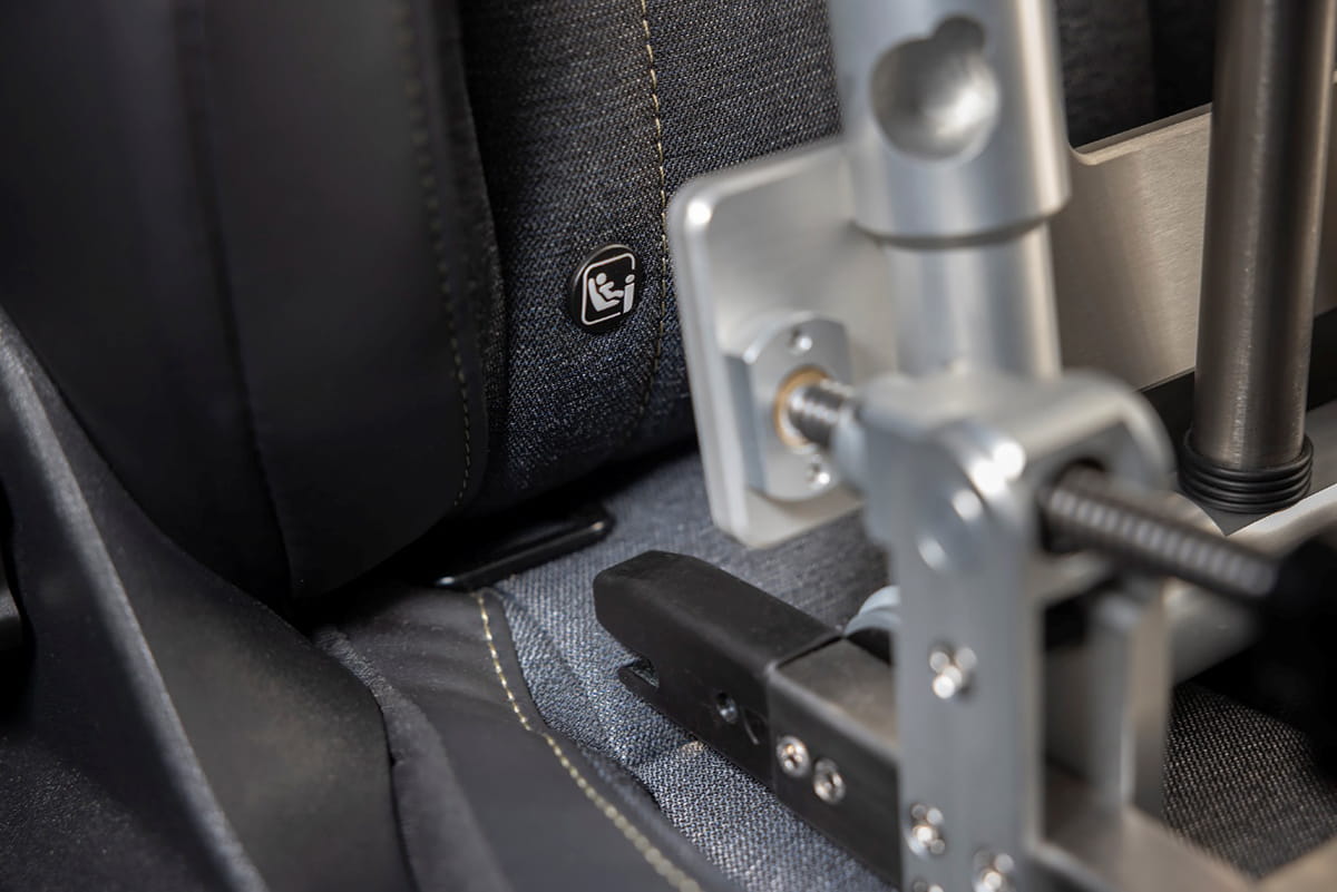 对于未配备集成式 ISOFIX 锚点的车辆或测试装置,可使用标准或定制的 ISOFIX 适配器以确保安装稳固。此外,每套 AutoKEMAR 均配备伸缩臂和棘轮式绑带,即使在没有 ISOFIX 的情况下,也能将座椅支架牢固固定。