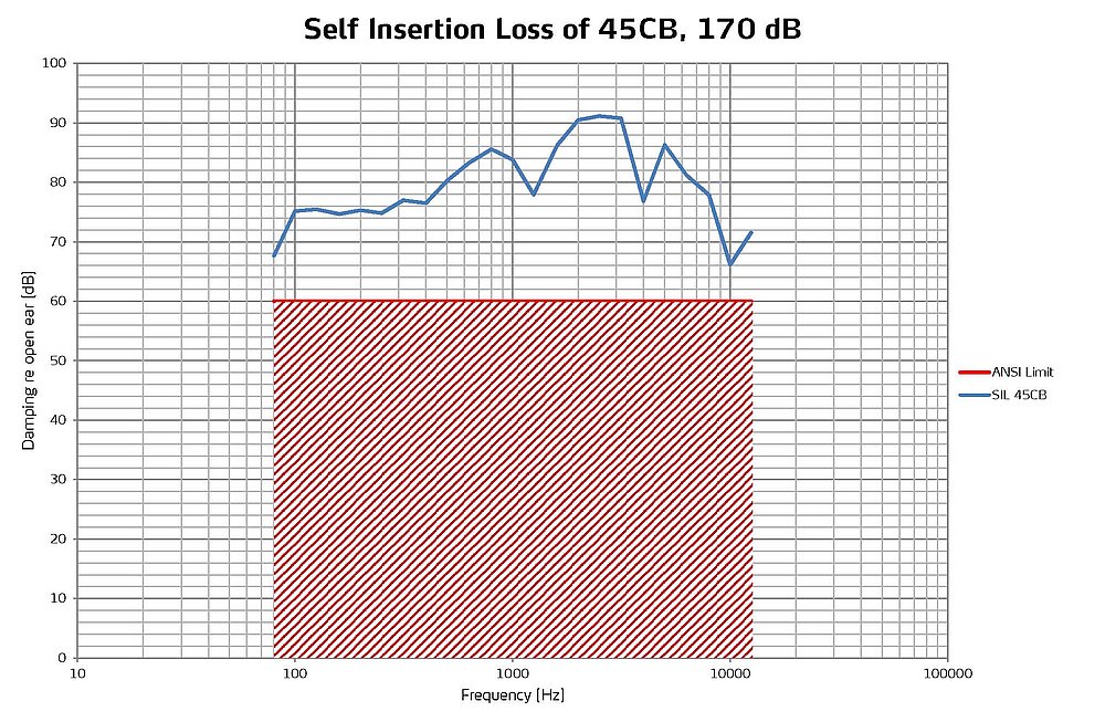 自插入损耗,采用闭合耳模拟器测量:100 Hz – 8 kHz >74 dB